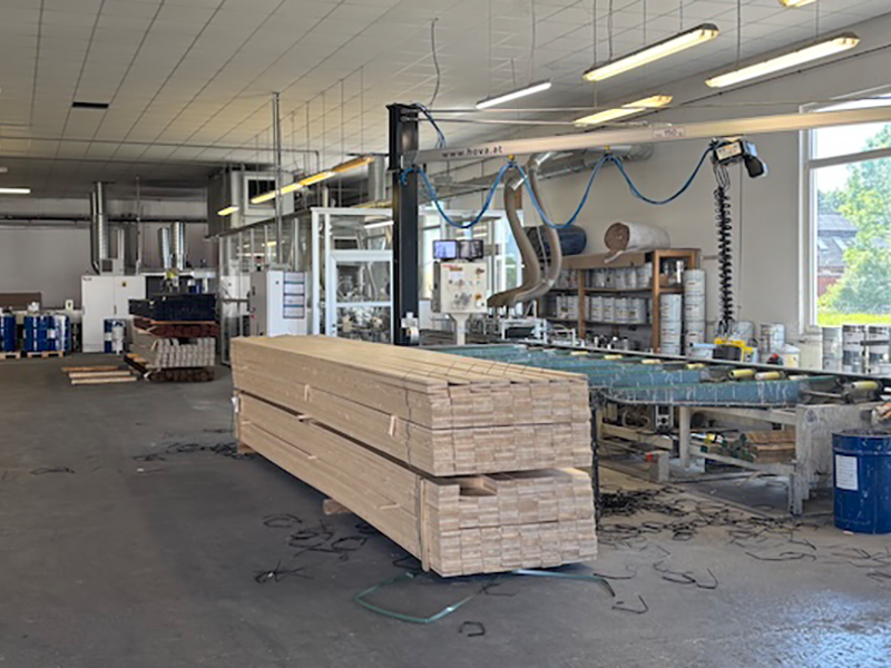 Auf einer Fläche von 7.000 m² werden Fenster mittels zweier 6-Achs-Lackierroboter, Profilhölzer und Leisten über halbautomatische Flachstraßen beschichtet. Seit 2002 werden ausschließlich wasserlösliche Produkte verwendet.